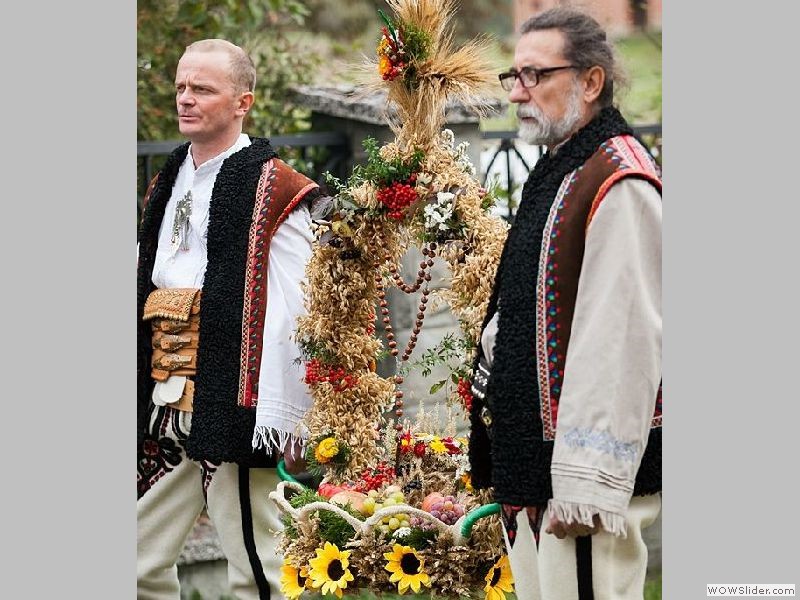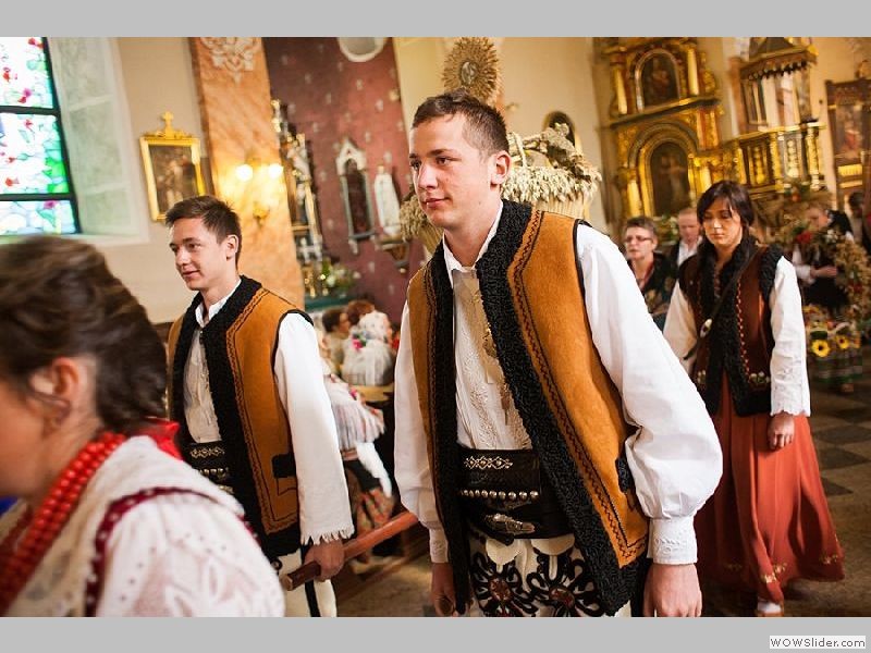 przybyli z pięknymi wieńcami, które sami wykonali aby wspólnie podziękować za tegoroczne plony.