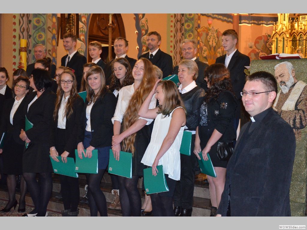 W dniu 24.11.2013r w Mszanie Dolnej odbyło się VII Zagórzańskie spotkanie Chórów "Laudate Dominum", w którym debiutował Chór z naszej Parafii pod dyrekcją Ks. Marcina Maciążka. Wszystkim osobom zaangażowanym w życie naszego Chóru bardzo dziękujemy. Zobaczmy efekty Ich pracy i życzmy Im dalszych sukcesów i wiele radości z tego co robią. Być może ktoś jeszcze odkryje w sobie chęć do wspólnego śpiewu... Występ Chóru został odnotowany w piśmie "Pod Lubogoszczą" - otwórz dokument. Otrzymał również specjalne podziękowania od władz Kościelnych i Państwowych: - podziękowanie1. - podziękowanie2.