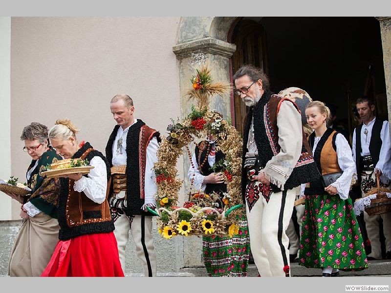 przybyli z pięknymi wieńcami, które sami wykonali aby wspólnie podziękować za tegoroczne plony.
